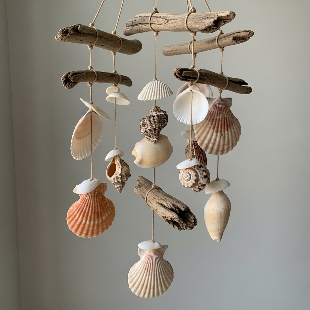 - Nizanje in lepljenje: Na nitke pritrdite školjke. Lahko jih nanizate, če imajo luknjice, ali pa jih prilepite z močnim lepilom. Razporedite jih po dolžini, da ustvarite harmoničen videz.